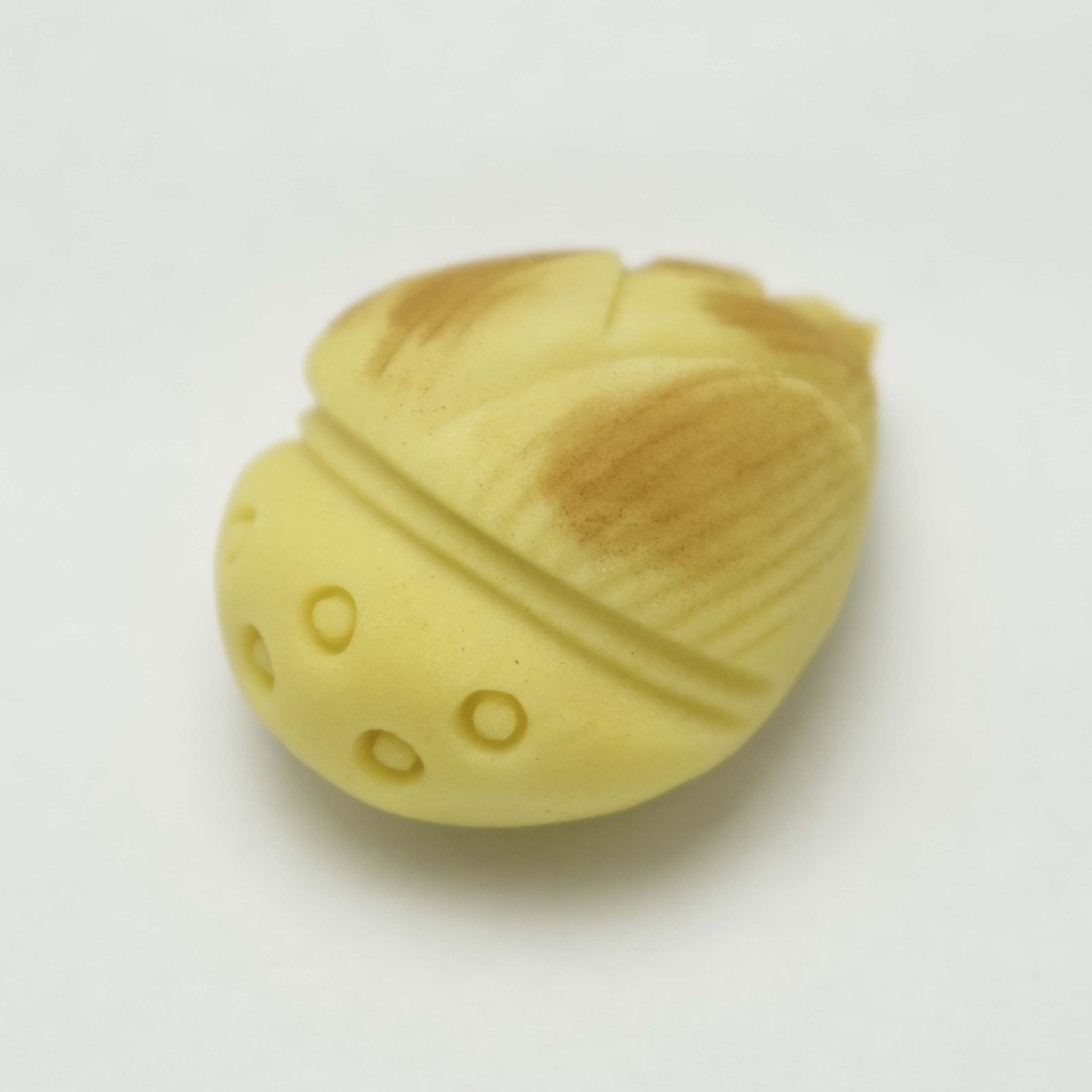 黄色煉切製。中は小豆こし餡です。筍の型に仕上げました。
